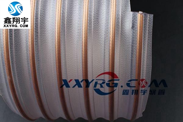 產(chǎn)品特點:半透明PU管壁, 帶鍍銅色包塑鋼絲螺旋加強 -40°C / + 90°C (短時間可耐受125°C) 聚酯型聚氨酯(ESTER PU)軟管, 帶鍍銅色包塑鋼絲螺旋加強筋。內(nèi)壁平滑, 以保證物料在管內(nèi)流動順暢. 和傳統(tǒng)的橡膠軟管和PVC軟管相比具有極高的耐磨度和使用壽命。不同規(guī)格產(chǎn)品的壁厚相同, 均為0.9毫米。耐礦物油、耐化學品。具有優(yōu)異的耐臭氧和耐候性,低溫下仍能保持很好的柔軟度。不含鹵素,符合RoHS環(huán)保指令要求,原材料符合 REACH的規(guī)定。螺旋鋼絲接地可以排靜電, 符合TRB S 2153的排靜電標準。 用于顆粒、磨損性粉末、刨花或鋸末的抽吸和傳輸。適合塑料行業(yè)、陶瓷行業(yè)的物料傳輸或除塵等。在掃地車、路面清潔車、除草機等設(shè)備上也得到廣泛的應(yīng)用。